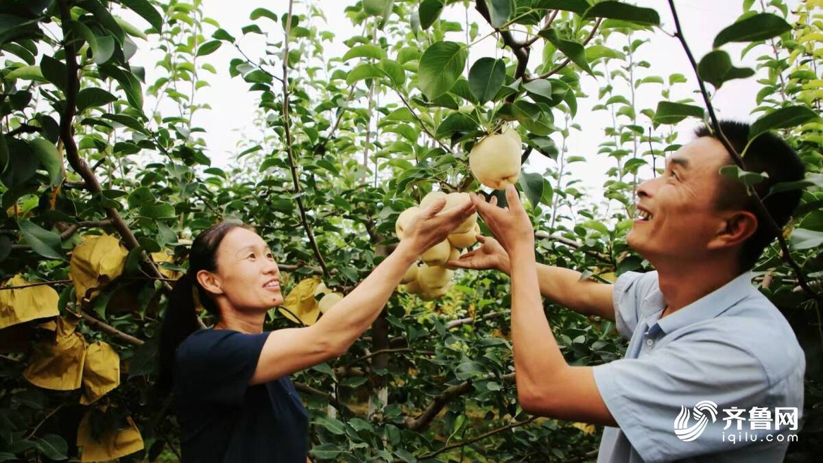 在聊城市冠县桑阿镇白佛头村的冠县华伟蔬菜种植专业合作社梨园里,扫视着枝头上沉甸甸的梨子,负责人刘伟和妻子刘丽华脸上洋溢着丰收的喜悦。